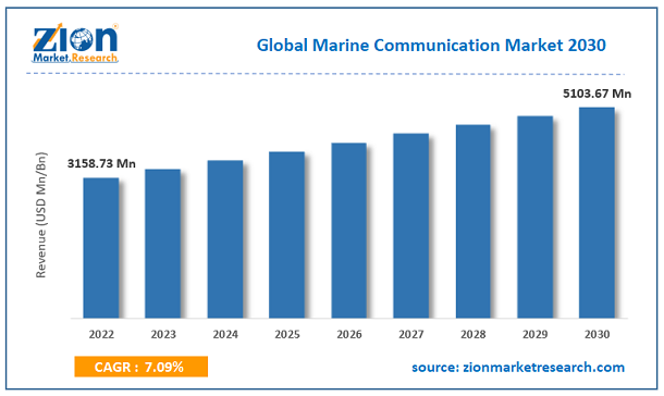 NEW YORK, United States, July 31, 2023 (GLOBE NEWSWIRE) -- Zion Market Research has published a new research report titled “Marine Communication Market- Global Industry Analysis, Size, Share, Growth, Trends, And Forecast, 2023 - 2030” in its research database. According to the latest research study, the global marine communication market size was valued at around USD 3,158.73 million in 2022. The market is expected to grow above a CAGR of 7.09% and is anticipated to reach over USD 5,103.67 million by 2030.